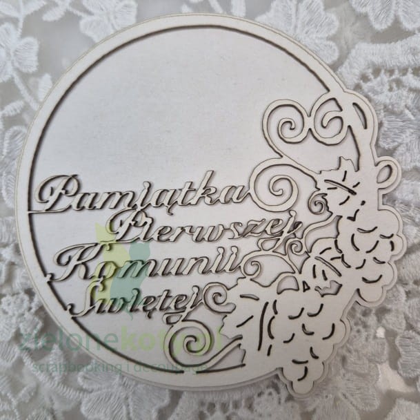 Wycinanka Agateria ramka dwuwarstwowa Pamiątka Pierwszej Komunii Świętej z winogronami