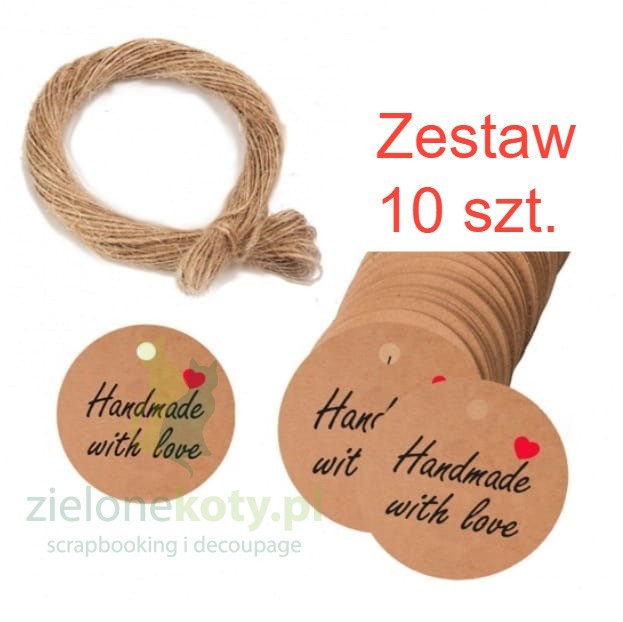 W zestawie 10 szt. zawieszek i 2m sznurka jutowego