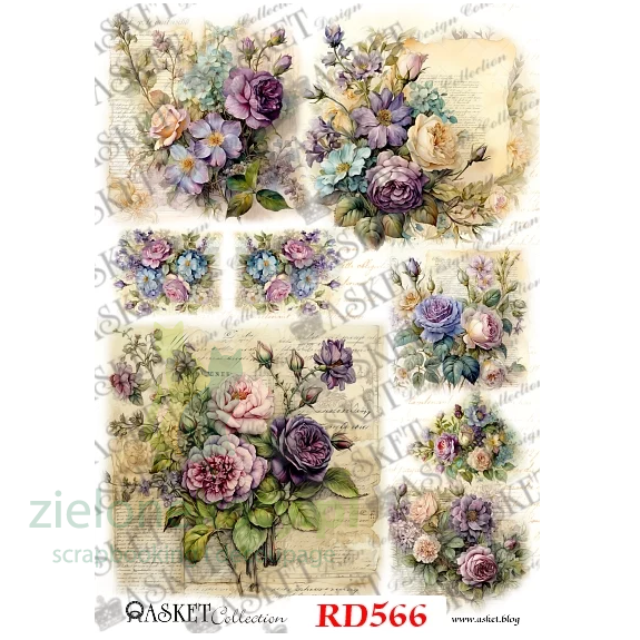 Ten papier ryżowy do decoupage został zaprojektowany i wyprodukowany przez Asket, jedną z najbardziej znanych i lubianych dekupażystek. Asket należy do prekursorek techniki decoupage w Polsce, jest znana z przepięknych projektów decoupage w stylu vintage, perfekcyjnego cieniowania i postarzania.