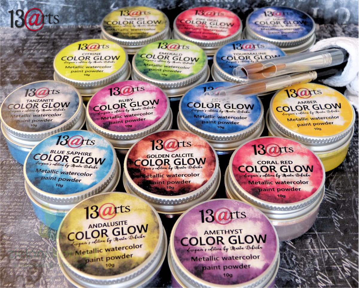 Silnie połyskująca, metaliczna farba akwarelowa w proszku COLOR GLOW.
