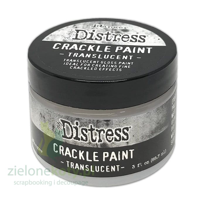 Crackle Paint Translucent to półprzezroczysta, błyszcząca farba idealna do tworzenia drobnych spękań.