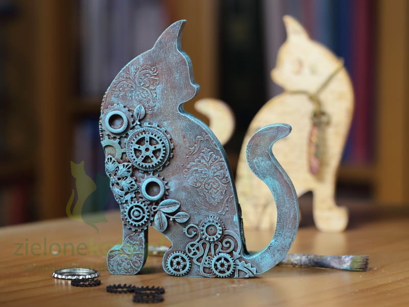 Produkt świetny, można nim otrzymywać ciekawe efekty - ostrzegłabym tylko, że sam w sobie ma połysk (a raczej blask) dużo większy niż normalne metalowe przedmioty. W celu uzyskania efektu rdzy producent zaleca łączyć go z farbą "Viva Rust" - nakładać niewielkimi porcjami na jego mokrą warstwę, tak aby oba preparaty mogły się nieco zmieszać. Można go też używać w celu otrzymywania innych ciekawych efektów.