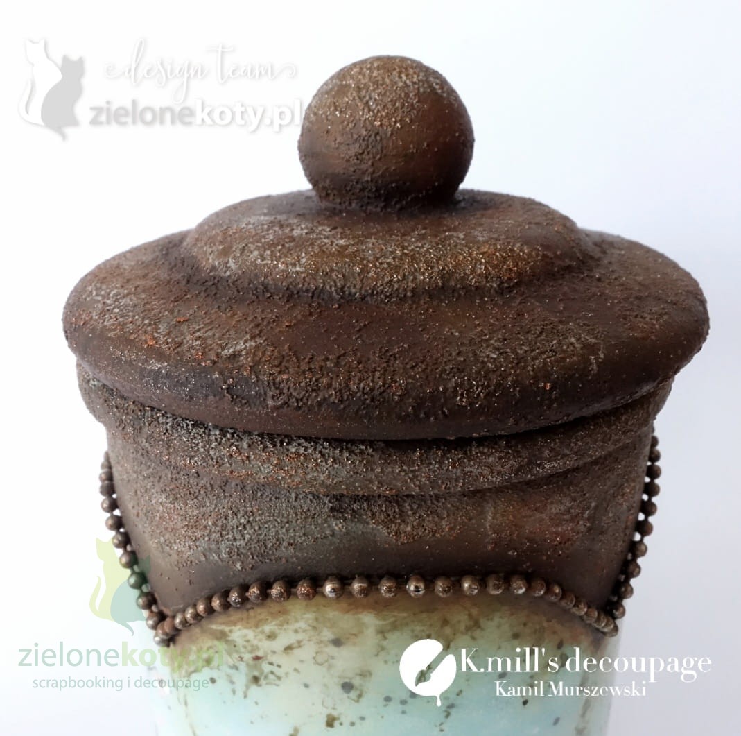 Zestaw farb akrylowych oraz proszku 3D do tworzenia efektu rdzy. Na ozdabiana powierzchnie nakładamy farby przechodząc od jasnego do coraz ciemniejszego koloru aż do uzyskania pożądanego efektu.