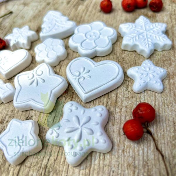 • Wymiary: Foremka: 11,5x9 cm, serduszko 3,4x3 cm, choinka 2,3x2,2 cm