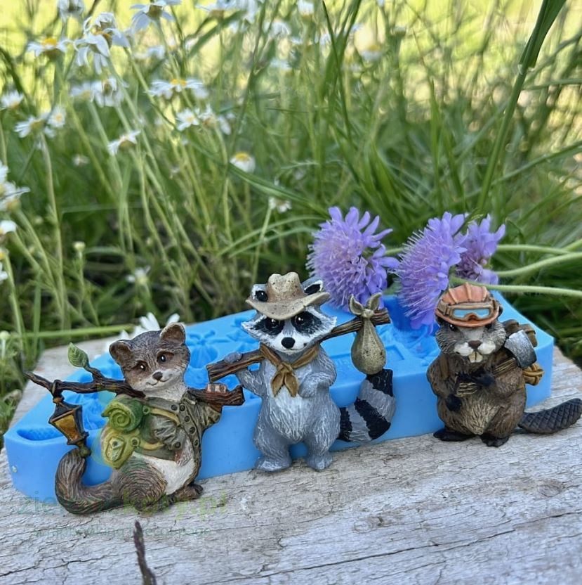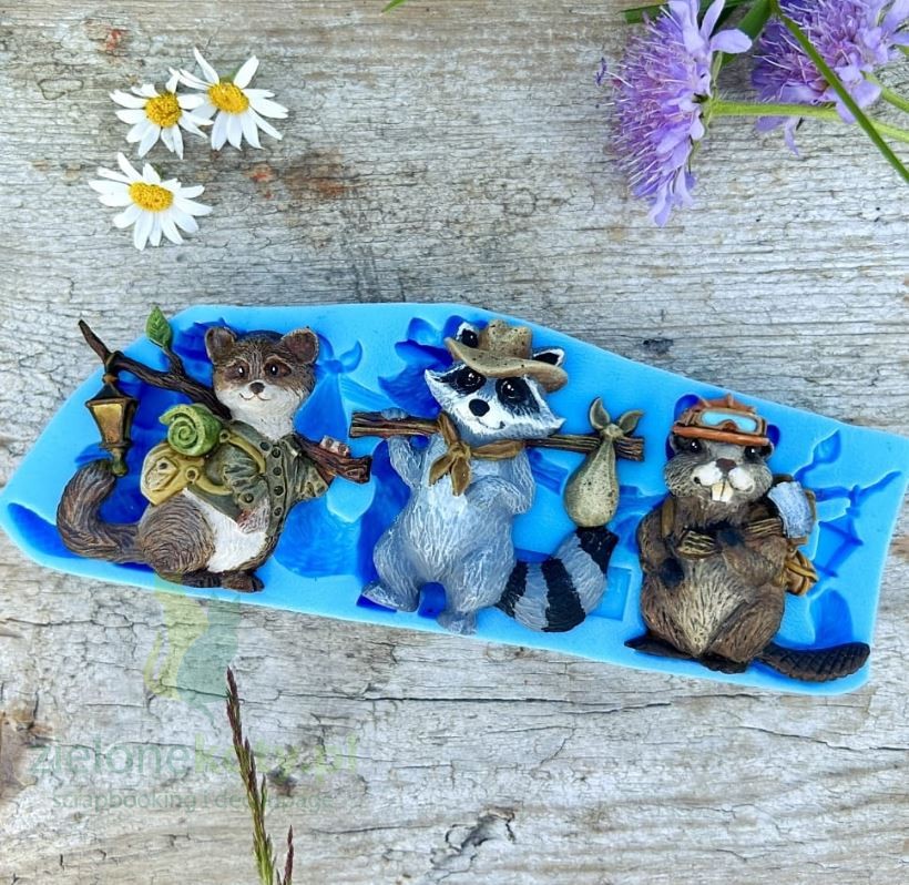 Foremka silikonowa do odlewów Mila Projekt - zwierzątka w podróży: szop, bóbr i kuna