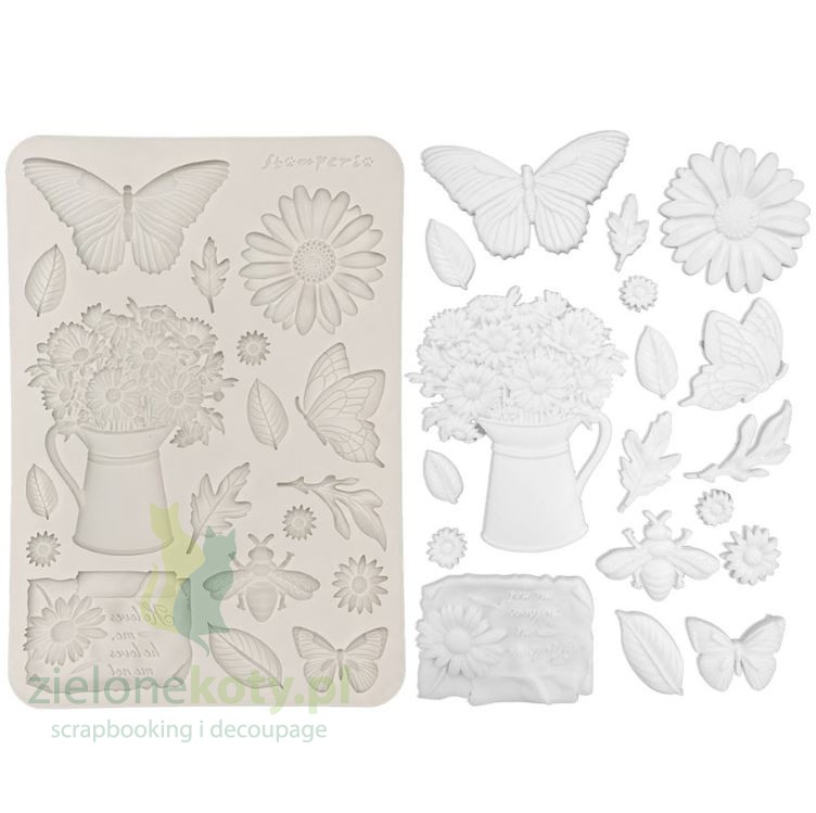 Foremka zawiera precyzyjnie wykonane wzory: motyle, kwiaty, bukiet
