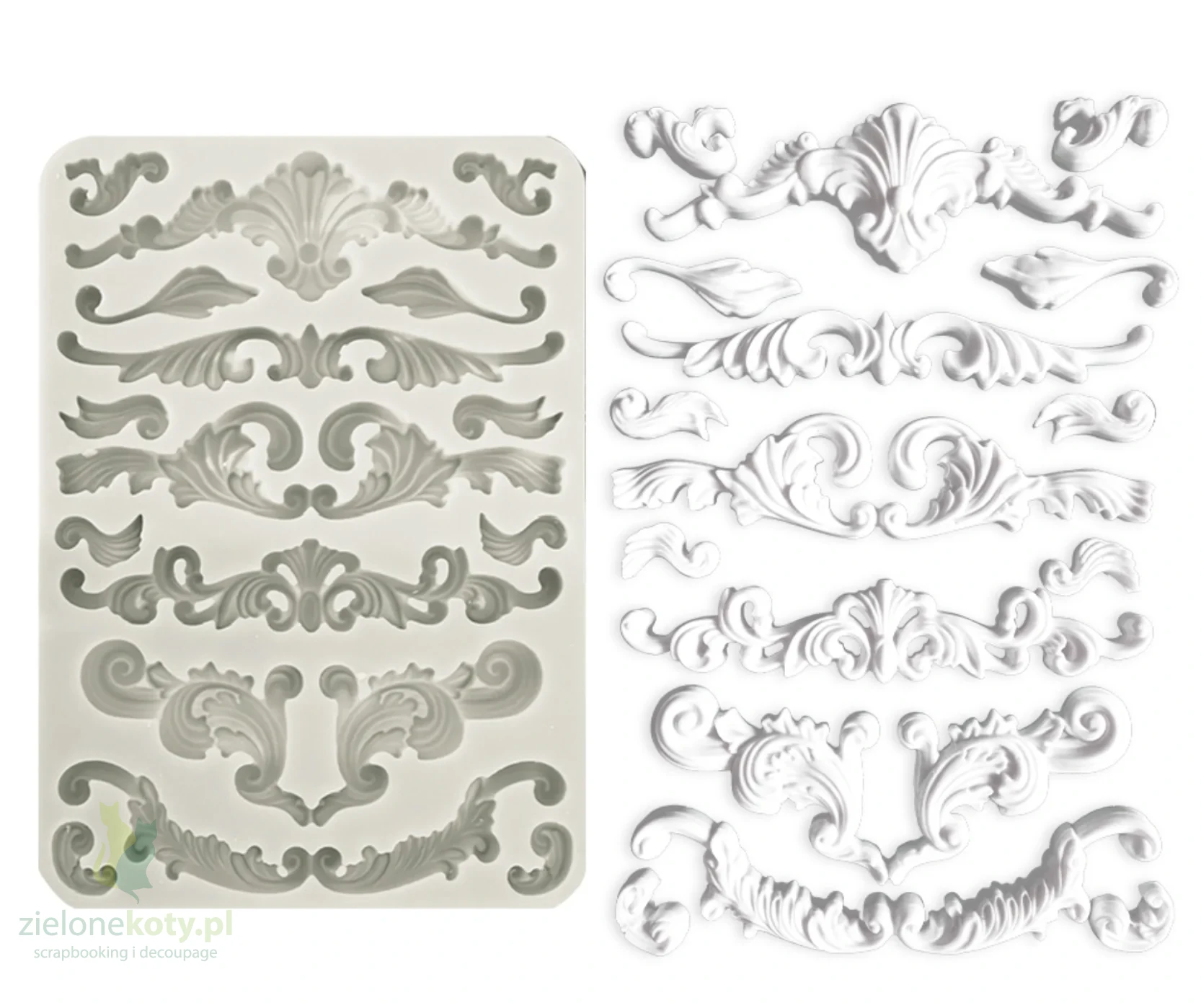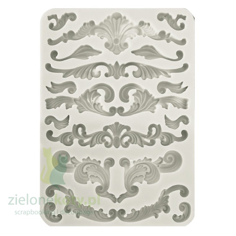 Foremka silikonowa do użytku z masami plastycznymi lub gipsem; po wypełnieniu masą i wyjęciu dekoru z foremki otrzymujemy trójwymiarowy ornament.