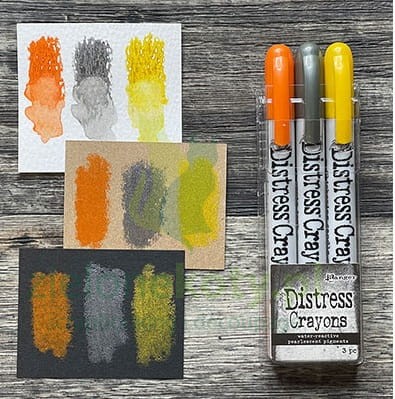 Ranger Distress Crayons to rodzaj kredek zawierających pigmenty reagujące z wodą (chociaż wyglądają jak pisaki), o bardzo szerokim zastosowaniu w różnych technikach mixed mediowych. Doskonałe do tworzenia tła, kolorowych akcentów czy dodawania cieni motywom. Sprawdzą sie też w kolorowaniu stempli - pigment można nakładać bezpośrednio kredką lub nakładając na paletkę, rozcieńczać woda i przenosić na kolorowana prace pędzelkiem.