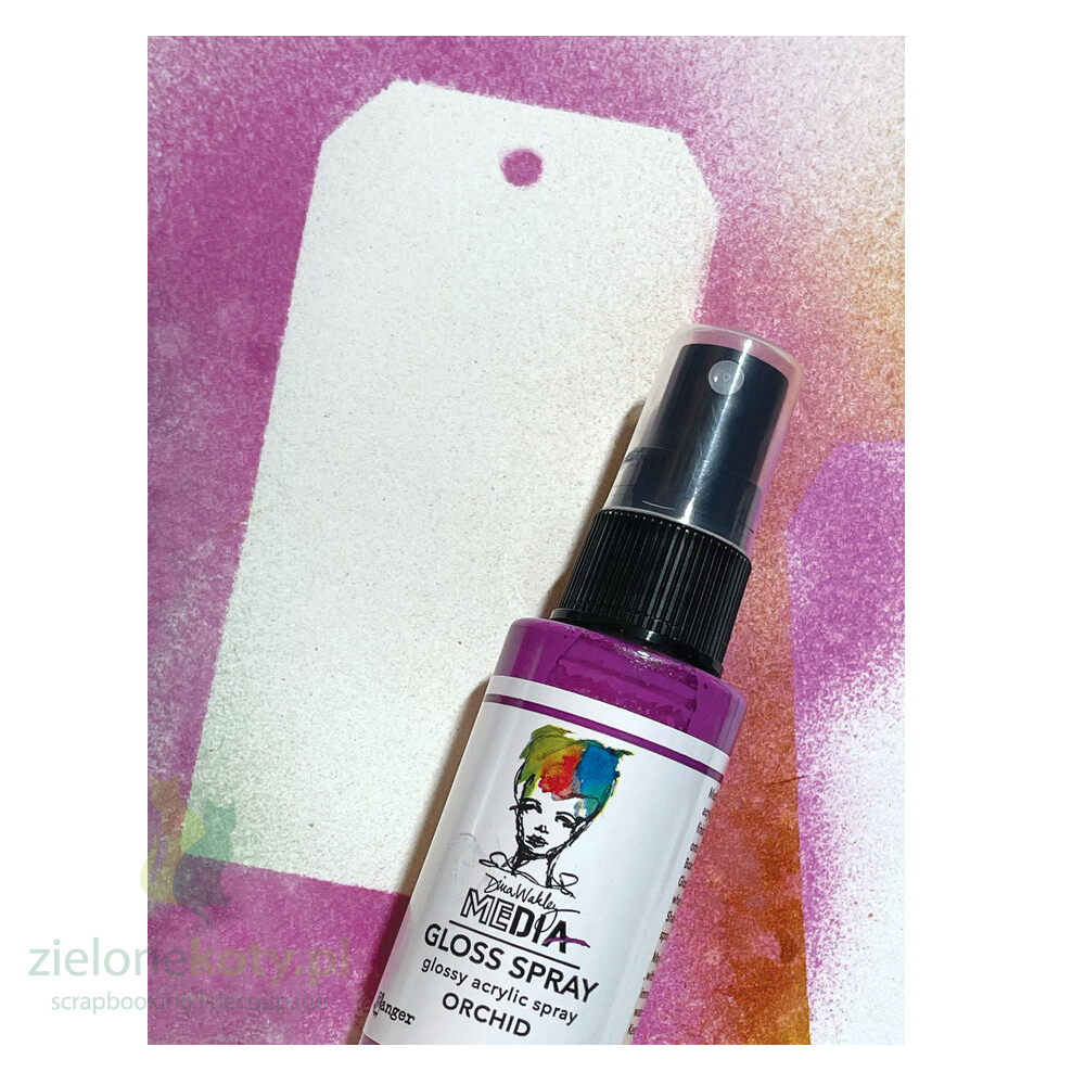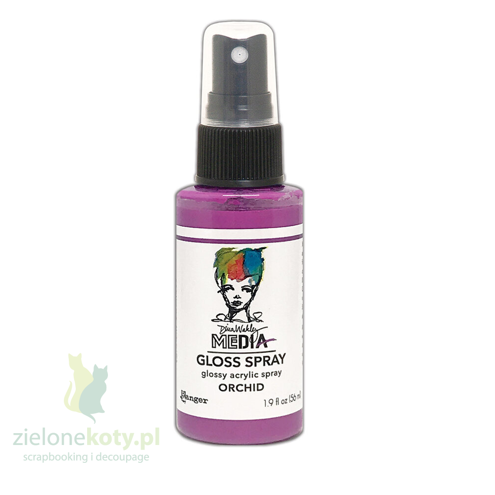 Dina Wakley Media Gloss Spray Orchid – błyszcząca, kryjąca mgiełka akrylowa do mixed media, różowa.
