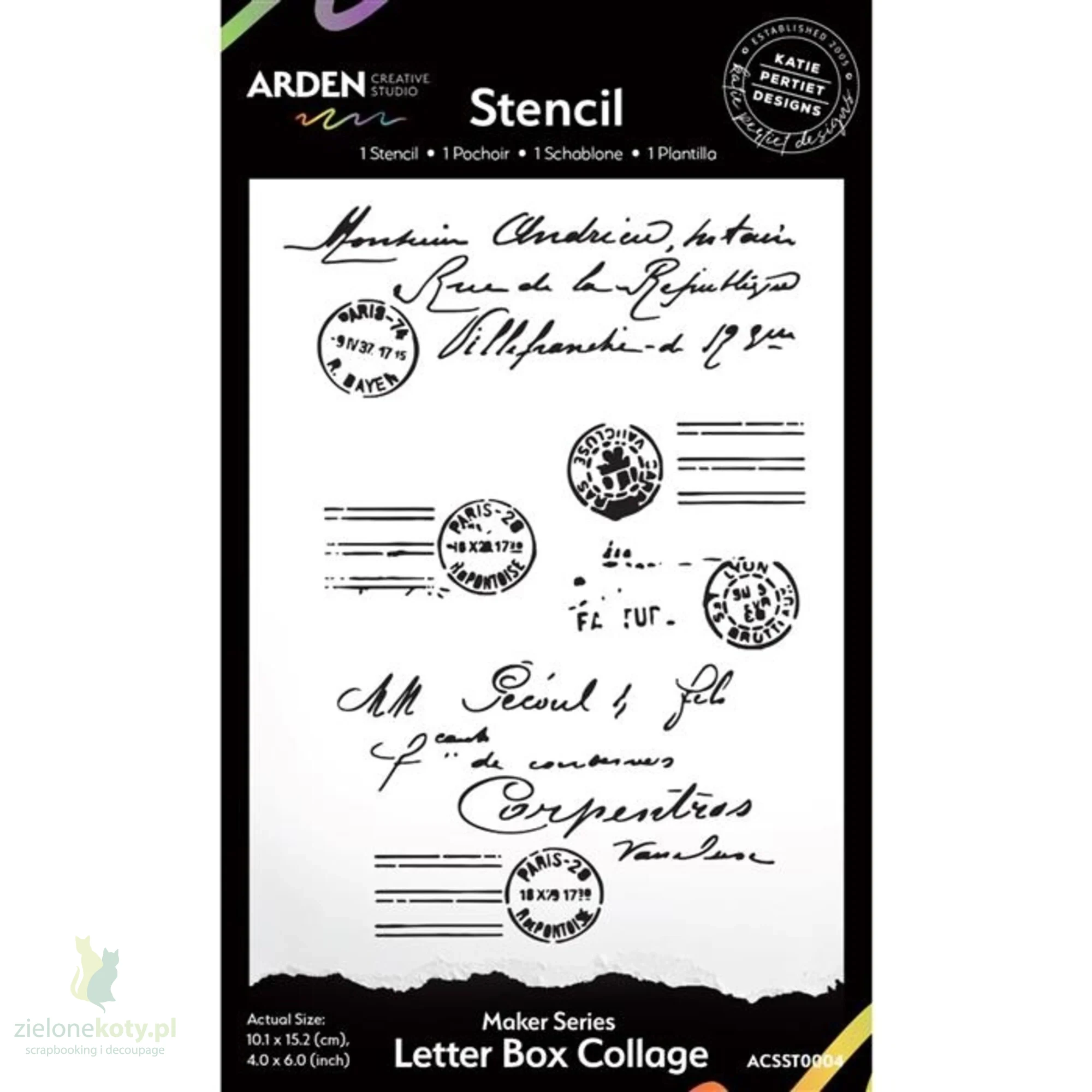 Szablon maska Arden Creative Studio 10x15 cm Letter Box Collage pieczątki, napisy