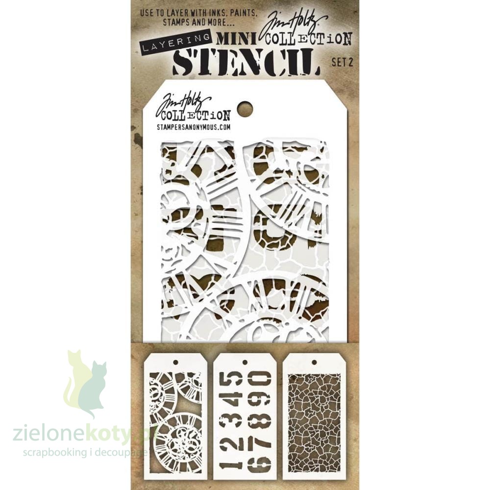 Szablon maska Tim Holtz mini zestaw #02 zegar cyfry spękania