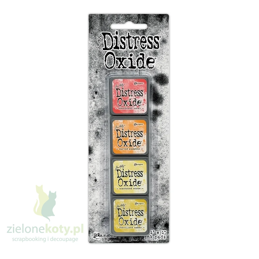 Distress Mini Oxide pads to długo wyczekiwana nowość od Tima Holtza i marki Ranger – kultowe tusze Distress Oxide teraz w kompaktowych, podręcznych wersjach! Zestaw zawiera cztery mini poduszki tuszujące w popularnych kolorach, idealne do tworzenia tła, cieniowania, stemplowania i technik mixed media.