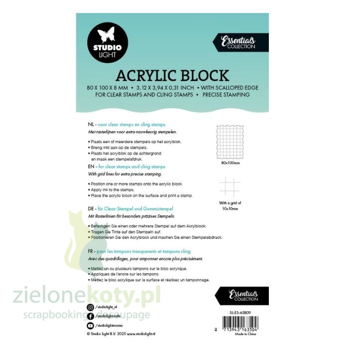 Bloczek akrylowy do stempli Studio Light z siatką 8x10 cm