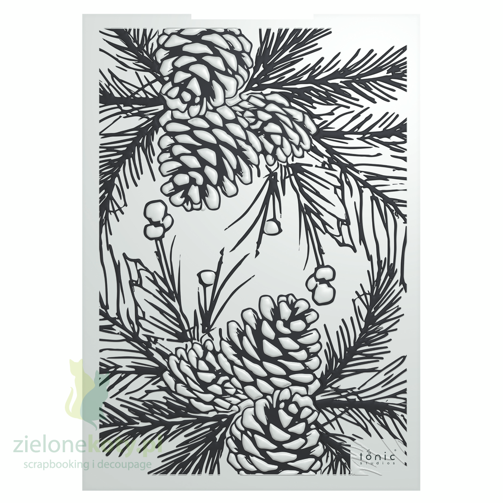 Folder do embossingu Tonic Studios 3D Timeless Tidings szyszki gałazki sosny