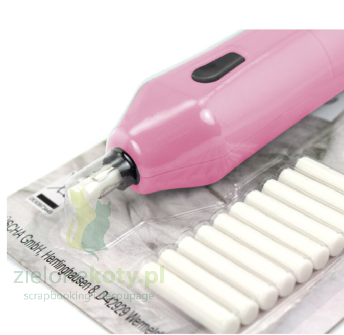 Zestaw zawiera urządzenie oraz 10 gumowych końcówek, dzięki którym dodasz swoim szkicom odblasków światła, jasnych detali, tekstury, jak i do korekcji rysunku.