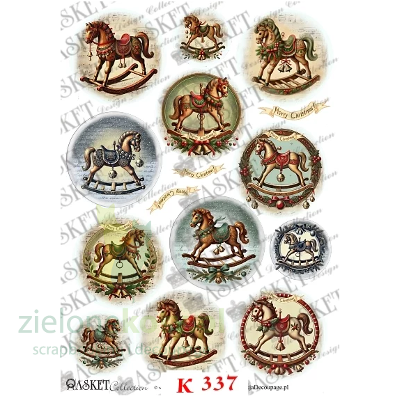 Karton Asket elementy do wycinania / przekładki do bombek 3D pleksi 9-10cm / konie na biegunach