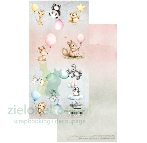 Papier do scrapbookingu 15x30 cm z elementami do wycinania  Alchemy of Art The Baby zwierzątka, balony