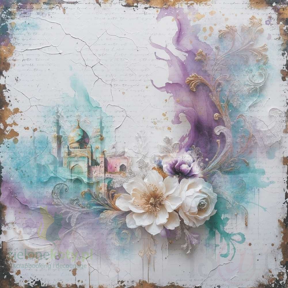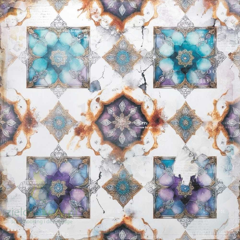 Kolekcja papierów do scrapbookingu 13Arts – Tales of the Sand to zestaw dekoracyjnych papierów stworzonych z myślą o projektach inspirowanych podróżami, naturą i orientem. Kolekcja wyróżnia się ciekawą paletą kolorów: połączenie delikatnego beżu z intensywnymi odcieniami turkusu i fioletu oraz wschodnimi, bajecznymi motywami.