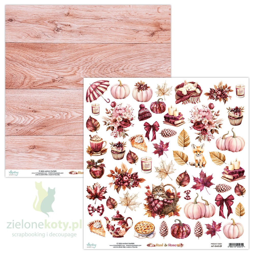 Papier do scrapbookingu z elementami do wycinania 30x30 cm Mintay papers Rust and Rose - papier stworzony do komponowania jesiennych projektów, w przytulnym ciepłym klimacie.