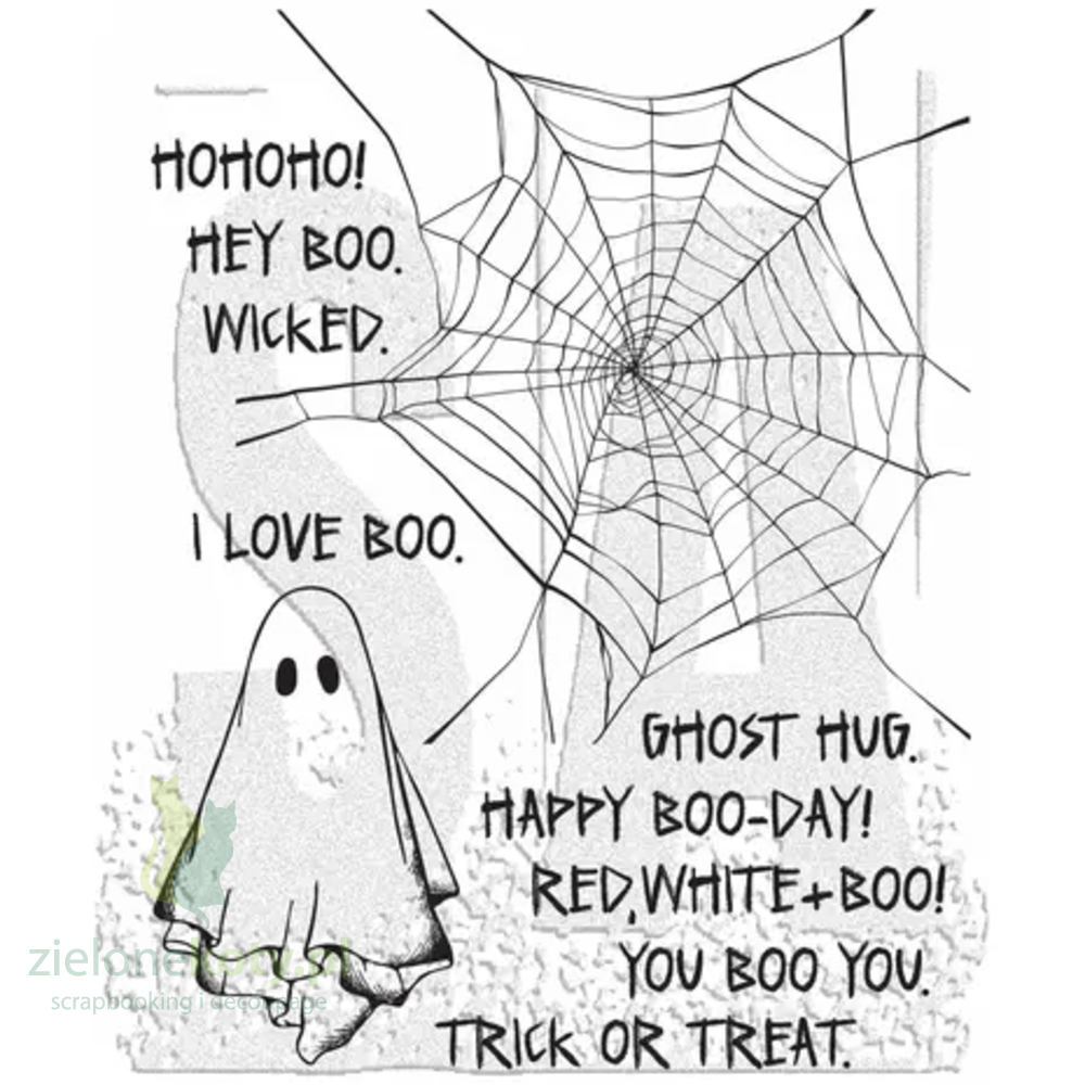 Stemple Tim Holtz Stampers Anonymous Boo Crazy Halloween pajęczyna, duch