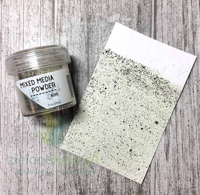 Ranger Mixed Media Powder to seria pudrów do embossingu o właściwościach nieco innych niż tradycyjne, dostosowanych zwłaszcza do technik mixed mediowych. Ten puder jest gruboziarnisty, nie nadają się więc do pokrywania obrysów i detali stempli.  Natomiast świetnie sprawdza się przy nanoszeniu na większe powierzchnie, wypełnianiu konturów czy w technikach mixed mediowych. Dodatkowo pudry te występują w wielu cudownych mieszankach kolorystycznych, a ich zachwycające, często metaliczne, niejednolite kolory dają mnóstwo możliwości upiększenia prac.