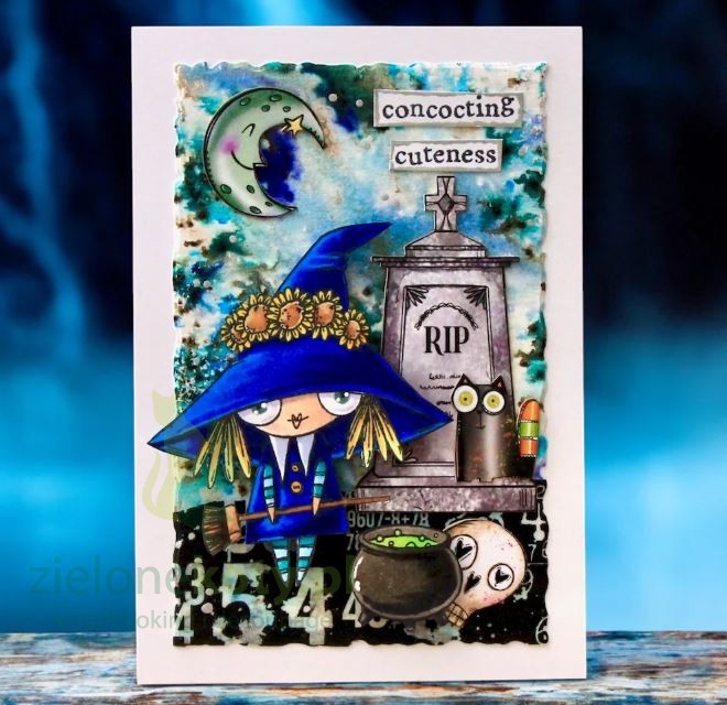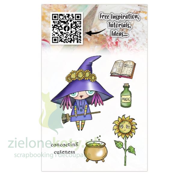 Zestaw stempli akrylowych AALL&Create Wee Witch - wiedźma, kociołek, słonecznik
