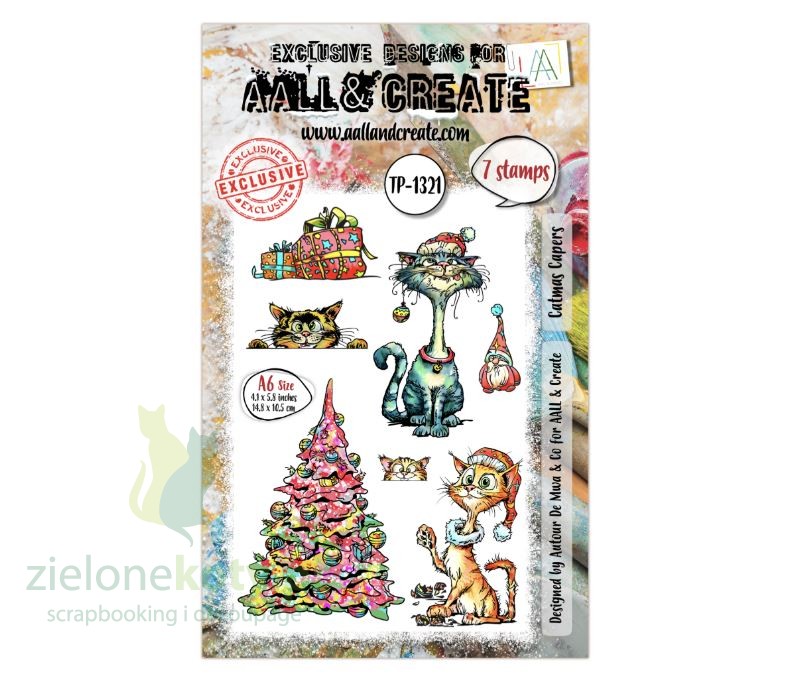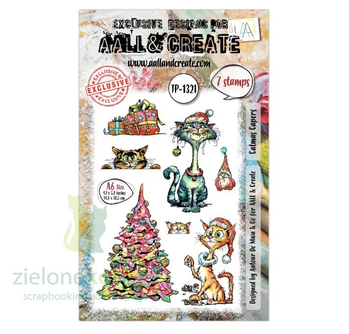 Stempel akrylowy AALL & Create Santa's Sidekicks A6 Catmas Capers koty choinka