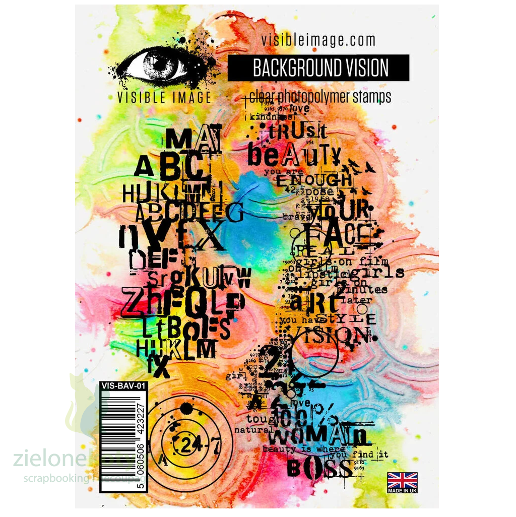 Stempel akrylowy Visible Image Background Vision litery tło mixmedia