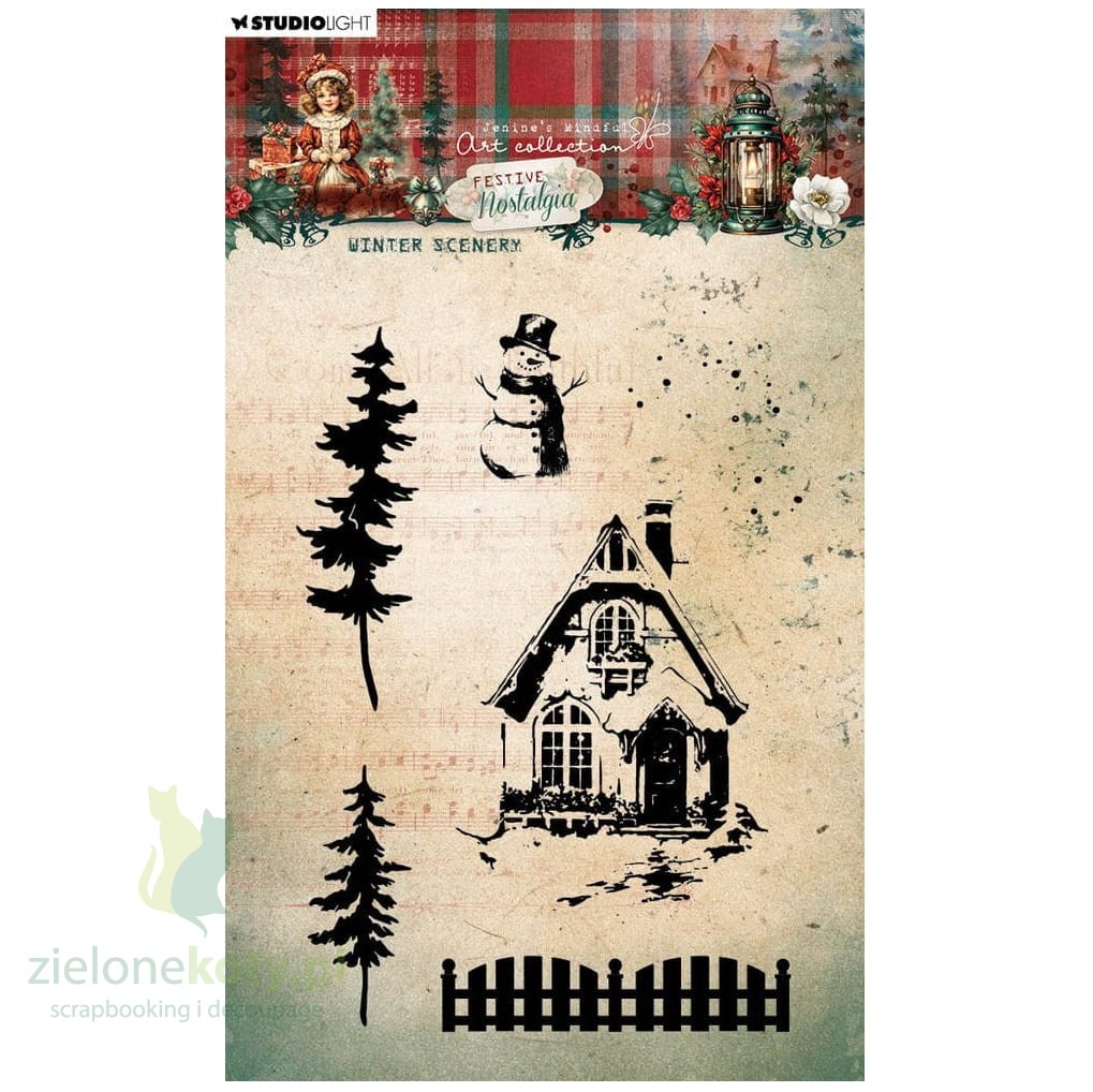Stempel Studio Light Festive Nostalgia Winter Scenery dom, choinki