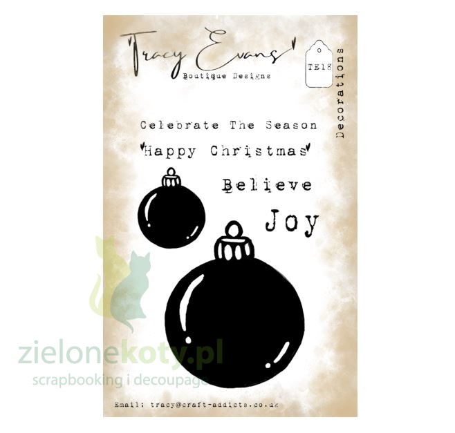 Stempel Tracy Evans Decorations bombki napisy