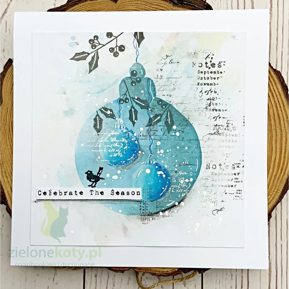 Zestaw stempli akrylowych ze wzorem okrągłych klasycznych bombek oraz napisów bożonarodzeniowych. Wysokiej jakości przezroczysty stempel pozwala na precyzyjne odbicie wzoru na projektach świątecznych: kartkach, albumach, grudniownikach, ozdobach.