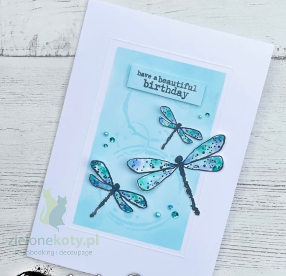 Zestaw akrylowych stempli z motywem ważek. Stempel został wykonany z przezroczystego materiału polimerowego, co pozwala na dokładne pozycjonowanie odbitki. Świetny do projektów artystycznych w rysowanym stylu, sketch, clean and simple, mixed media.