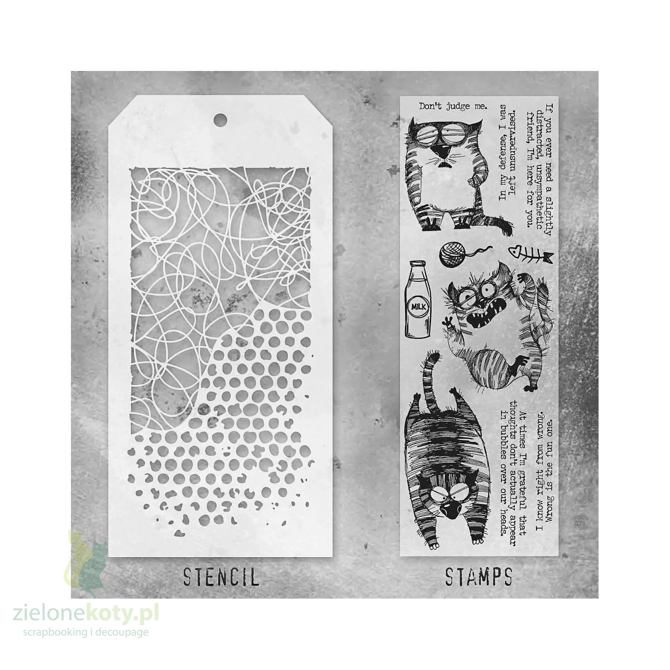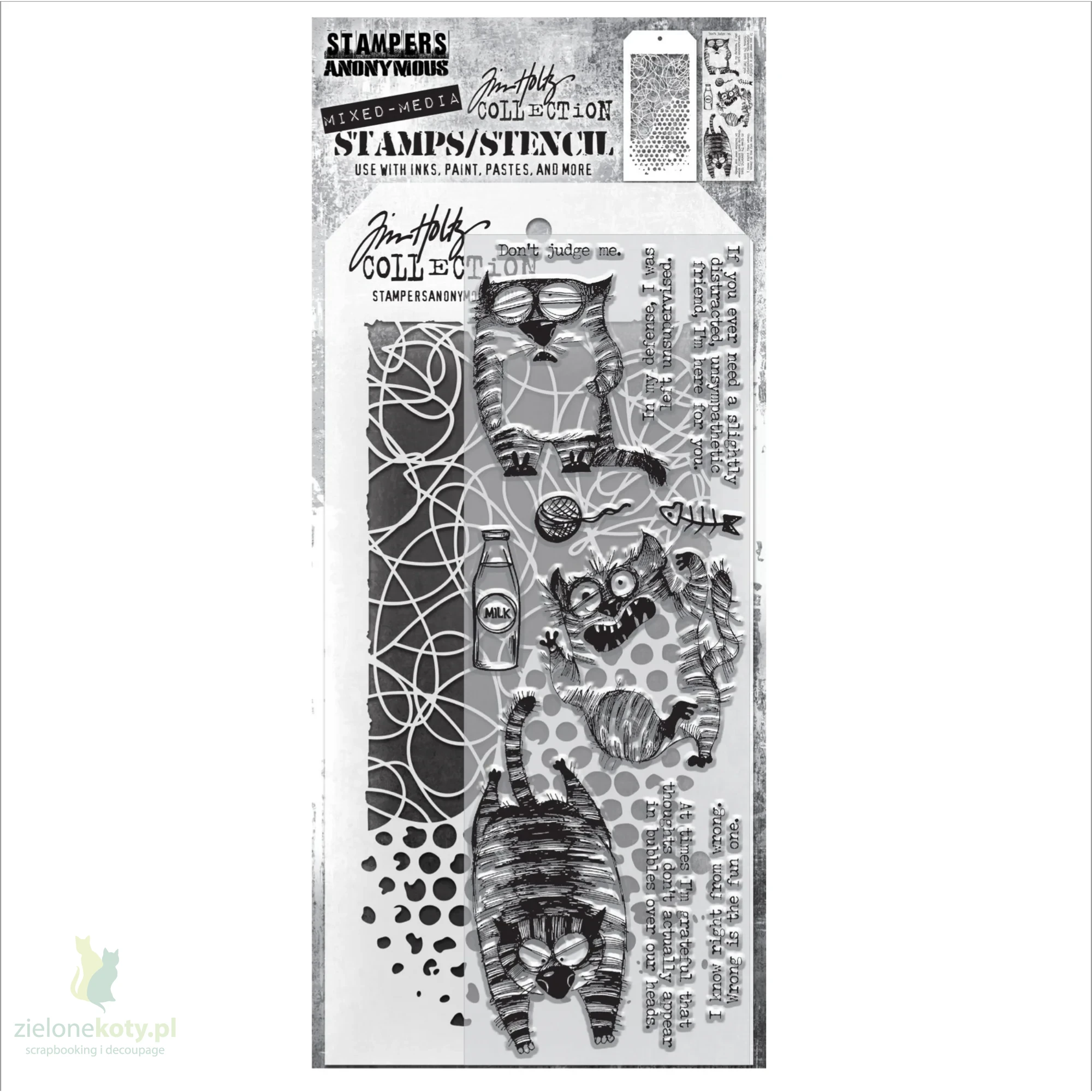Stemple + szablon Tim Holtz Mixed Media #10 Snarky Cat koty, napisy