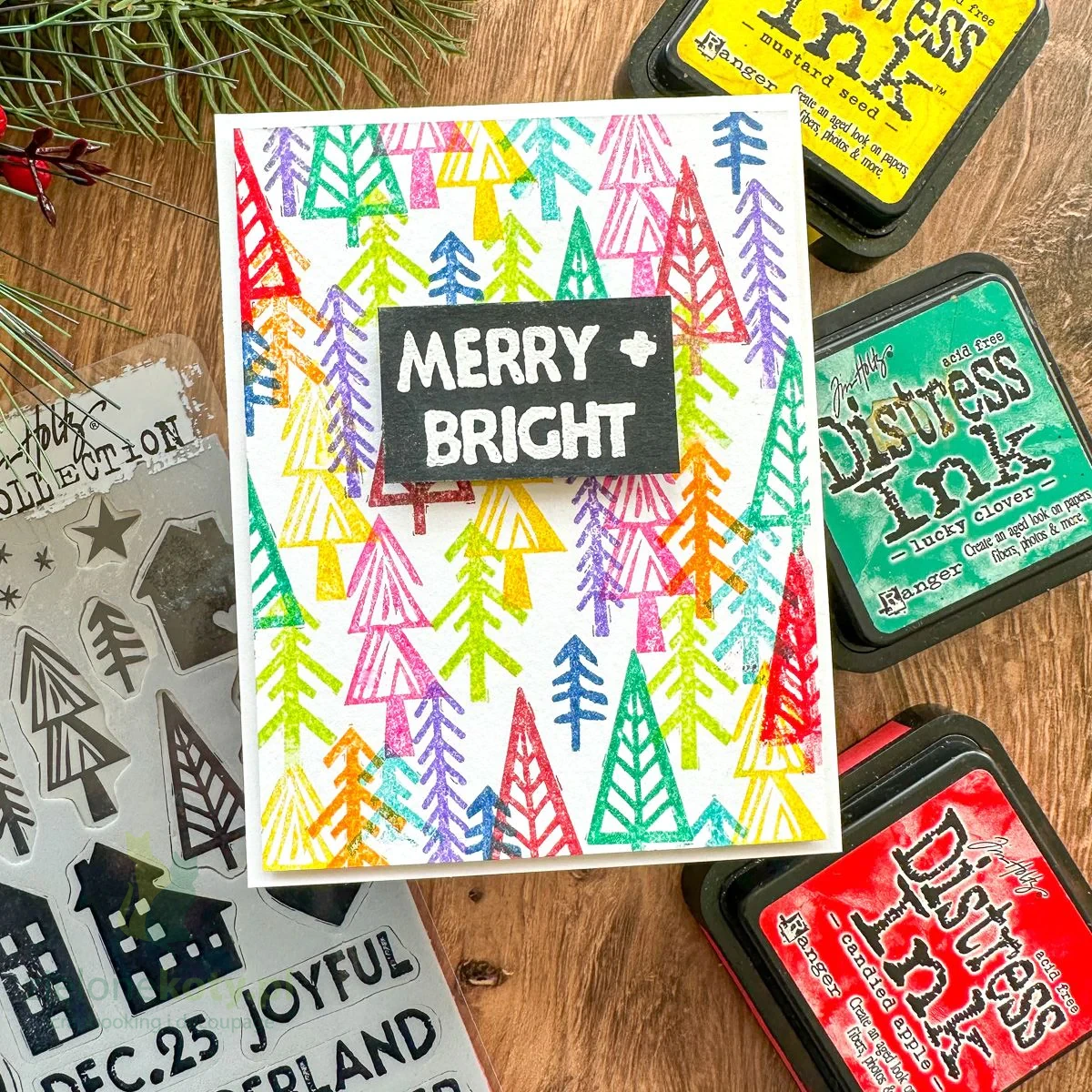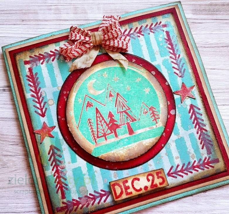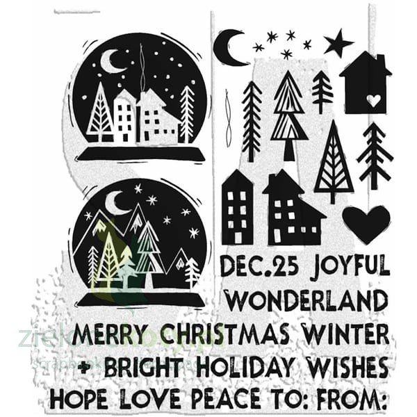 Stemple Tim Holtz Stampers Anonymous Festive Print zimowe domki kula śnieżna