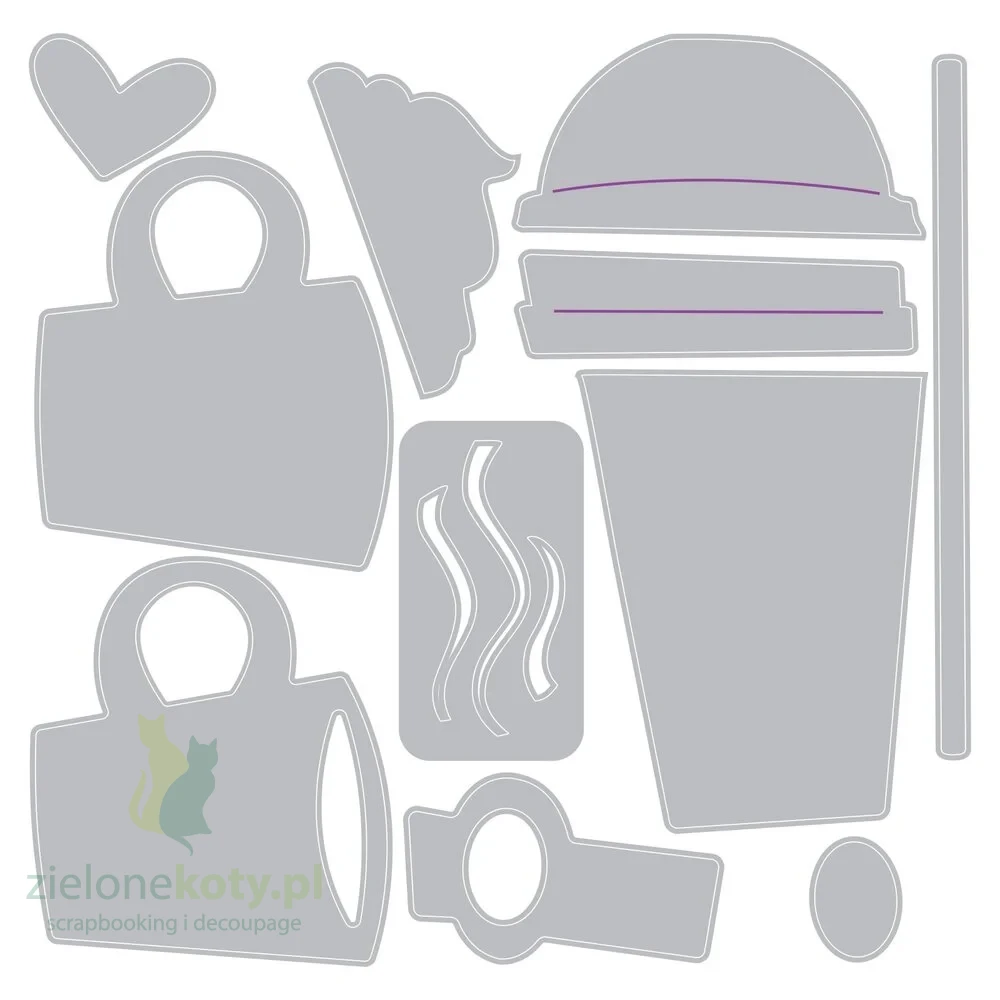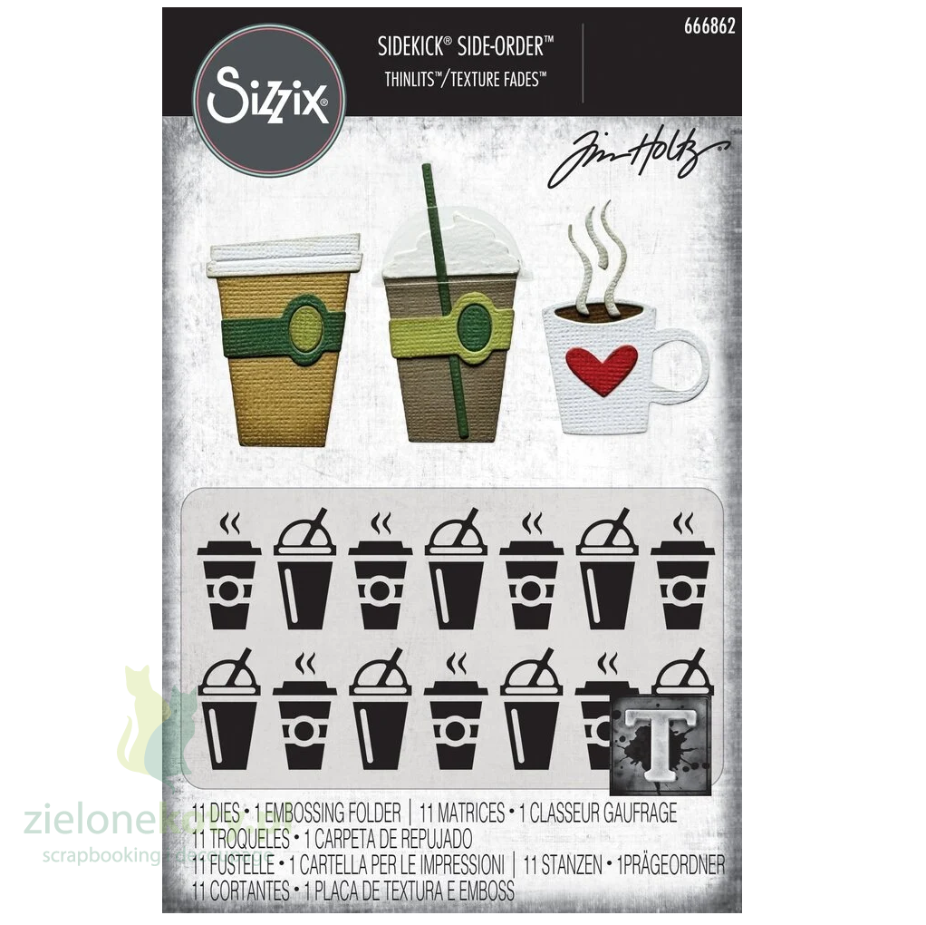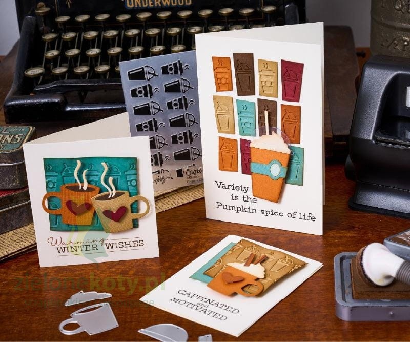 Wykrojnik + folder do embossingu Sizzix Tim Holtz Fresh Brewed kubki z kawą