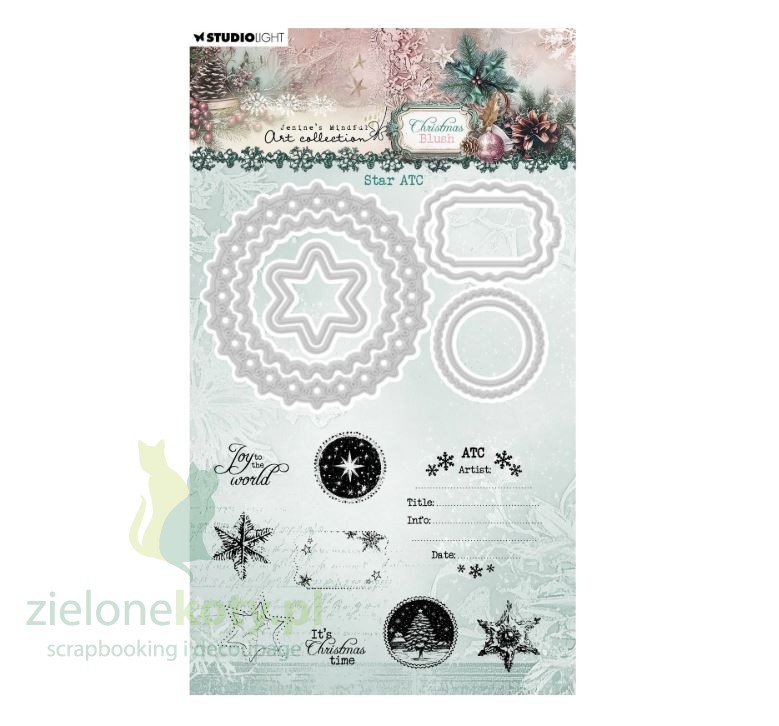 Wykrojniki i stemple do scrapbookingu Studio Light Star ATC zimowe elementy dopasowane rozmiarami do ATC