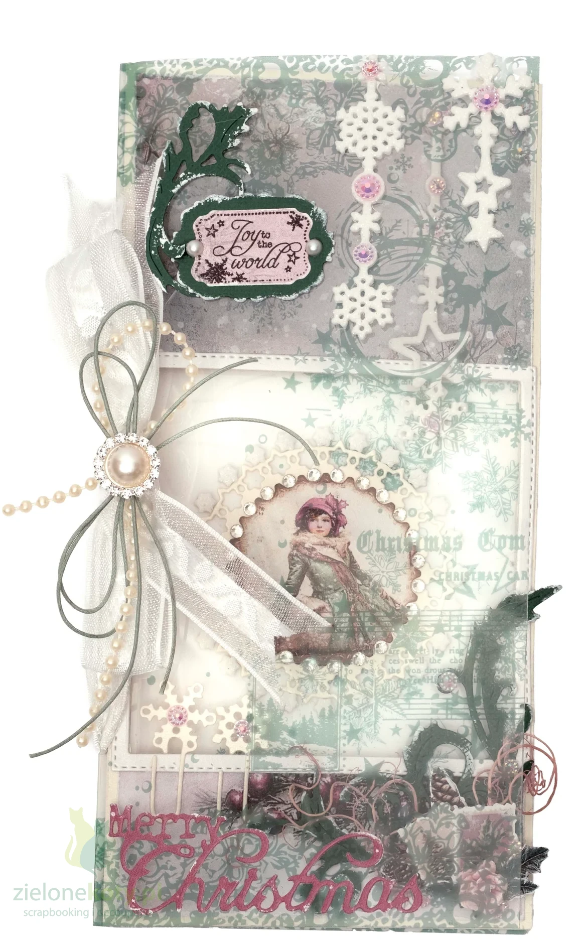 Wykrojniki i stemple umożliwiają tworzenie świątecznych, zimowych ATC. Elementy zestawu są dopasowane do tego formatu pracy.