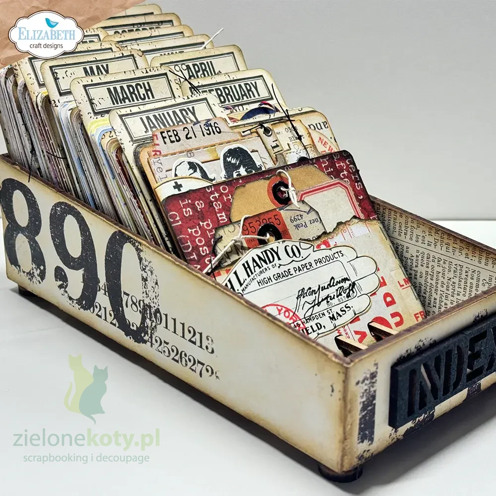 Wykrojnik do scrapbookingu Elizabeth Planner Cards - elementy, z których stworzysz stronę plannera, notatnika, albumu, journala: baza w stylu memorydex, etykiety, napisy