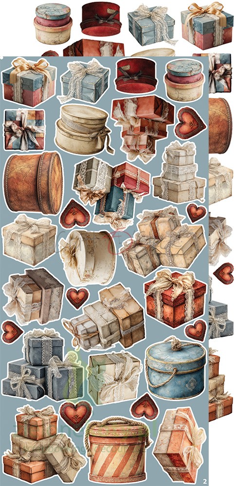 - Zestaw 18 arkuszy wysokiej jakości dwustronnego papieru do scrapbookingu z dodatkami