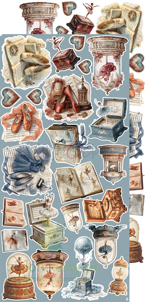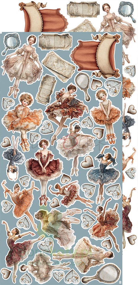 Zestaw papierów do scrapbookingu z dodatkami do wycinania Craft o'clock Timeless Grace - torty, zegary, listy, prezenty, baletnice