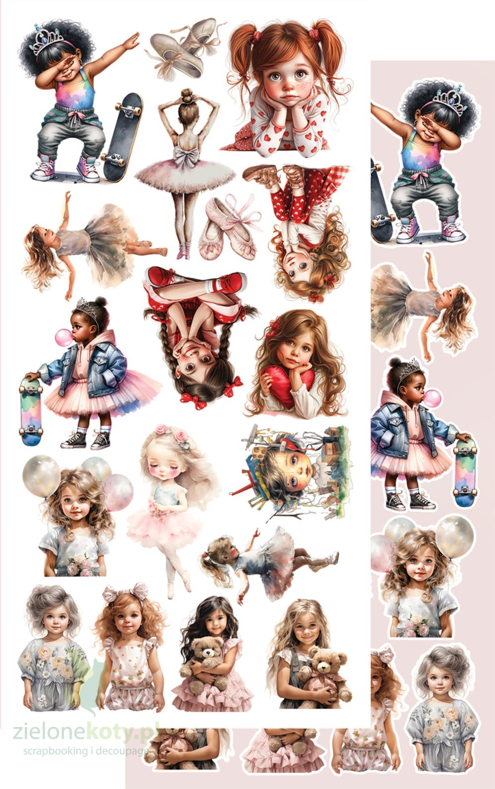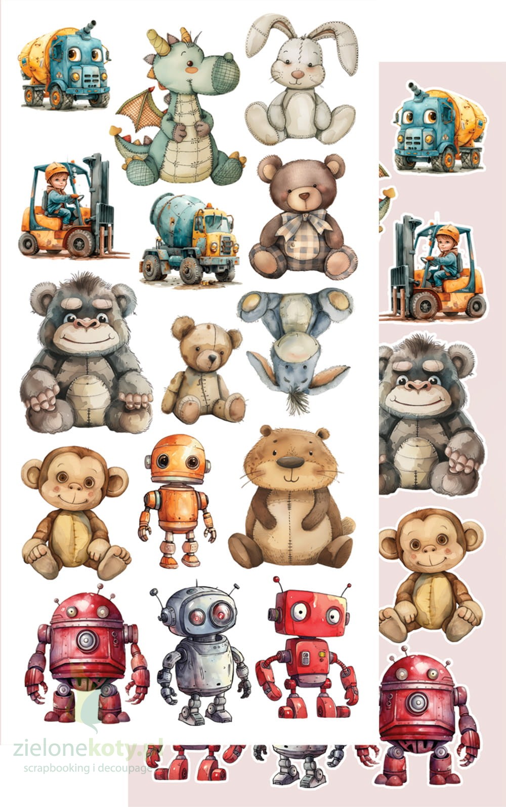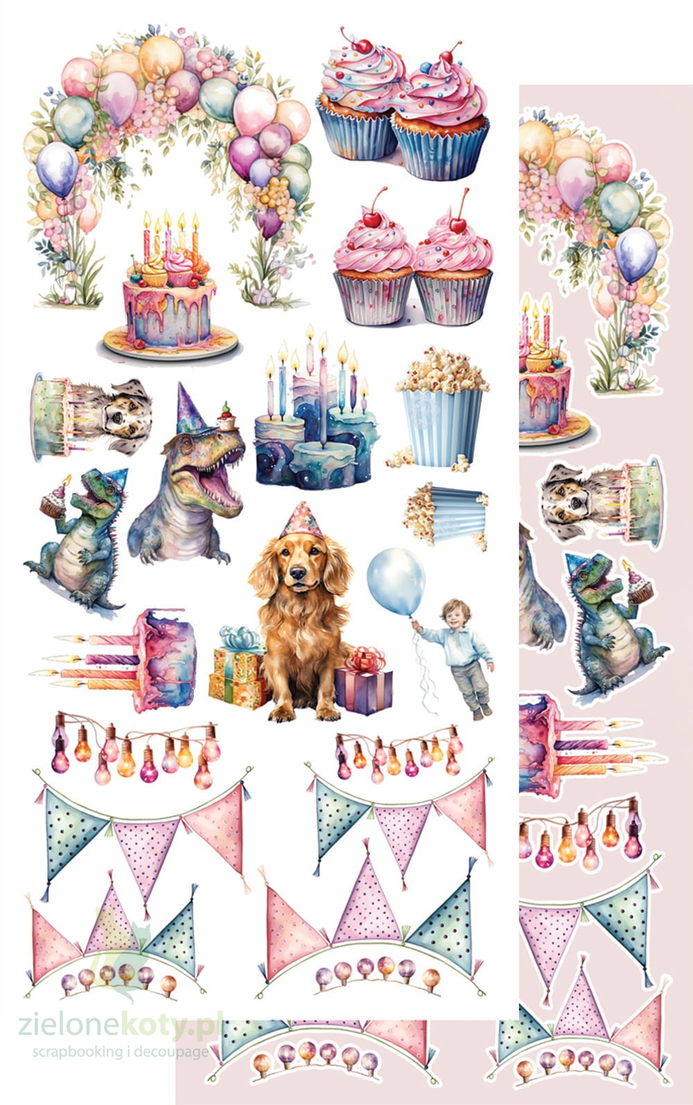 W skład zestawu wchodzi 7 dwustronnych papierów z elementami do samodzielnego wycięcia