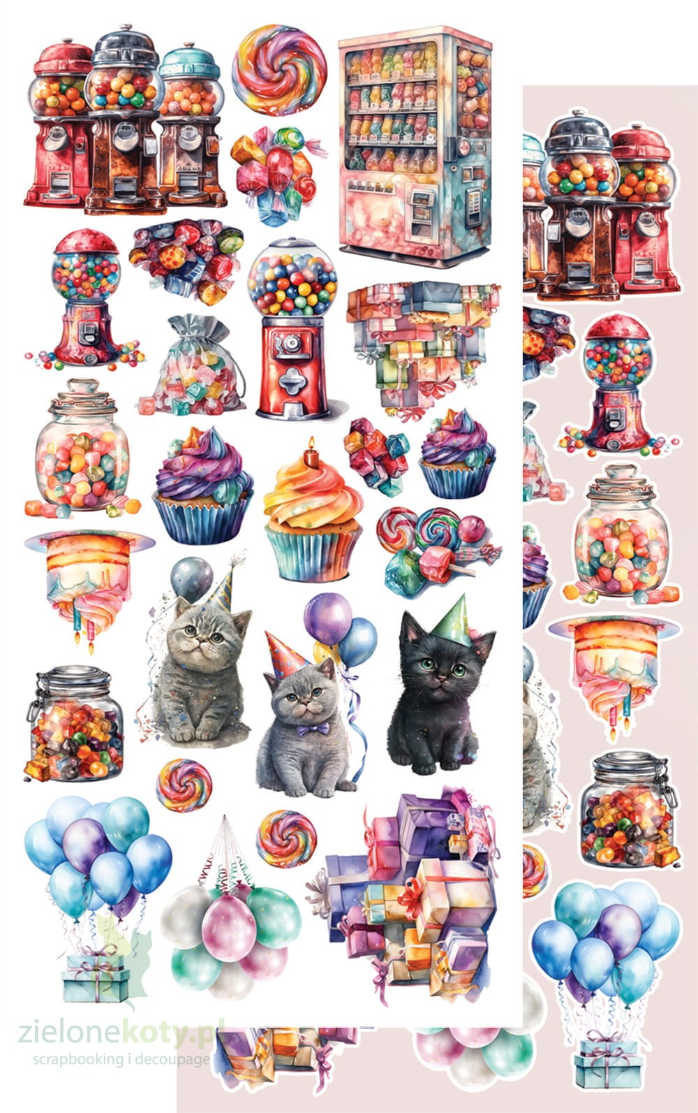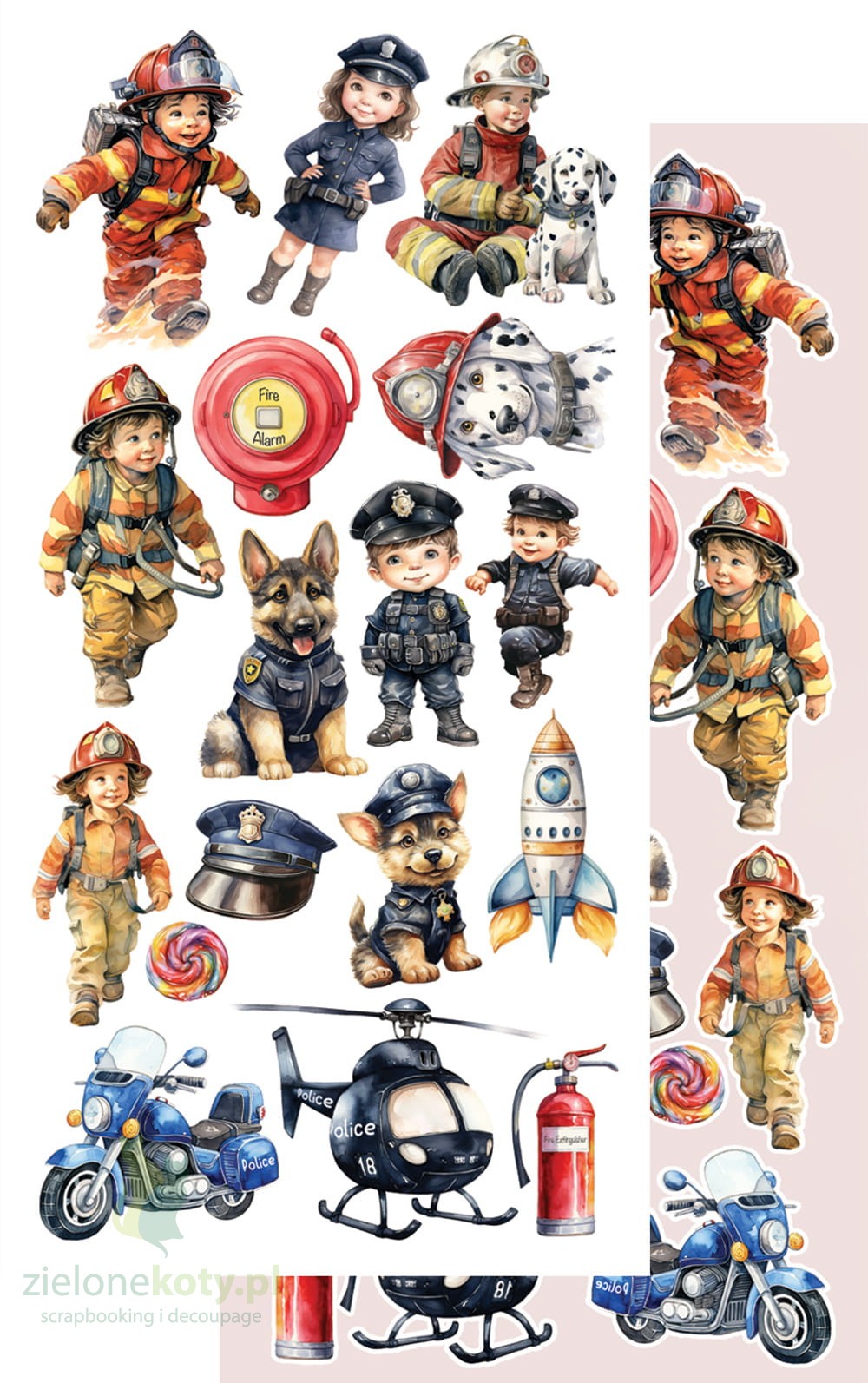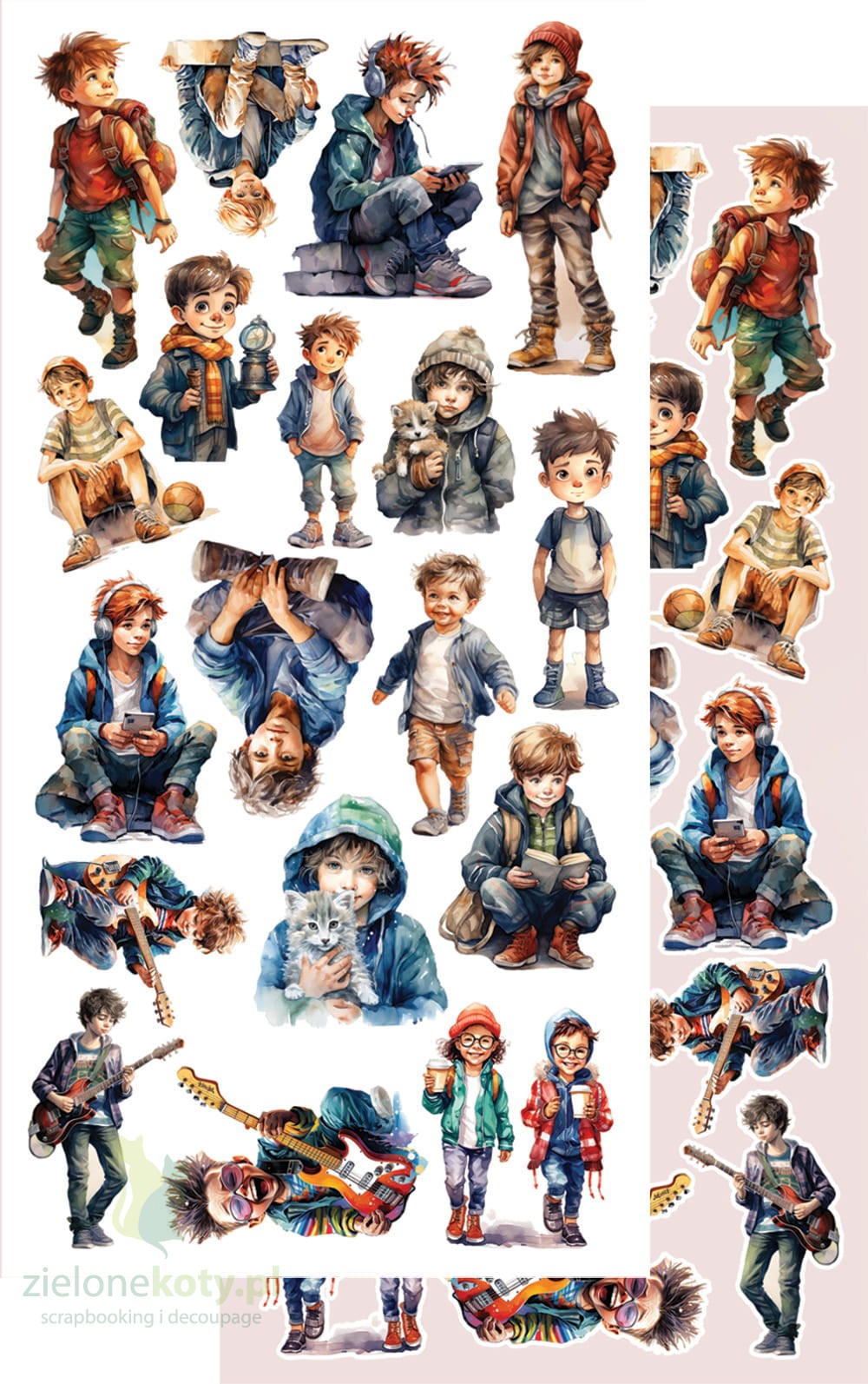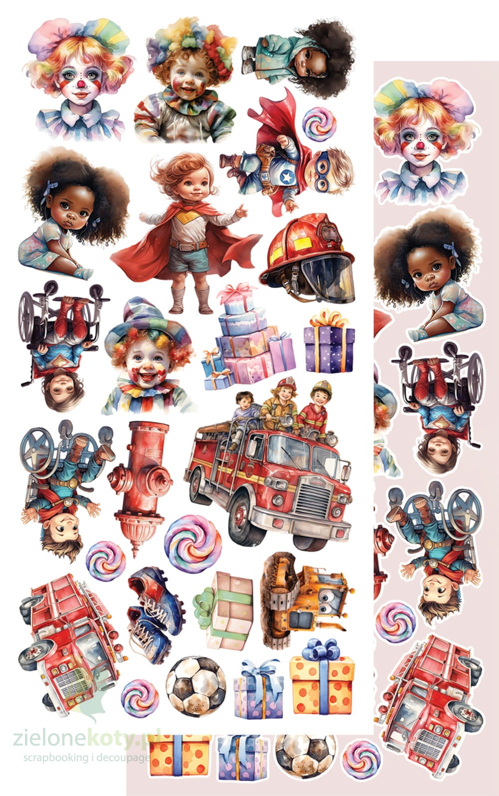 W skład zestawu wchodzi 7 dwustronnych papierów z elementami do samodzielnego wycięcia
