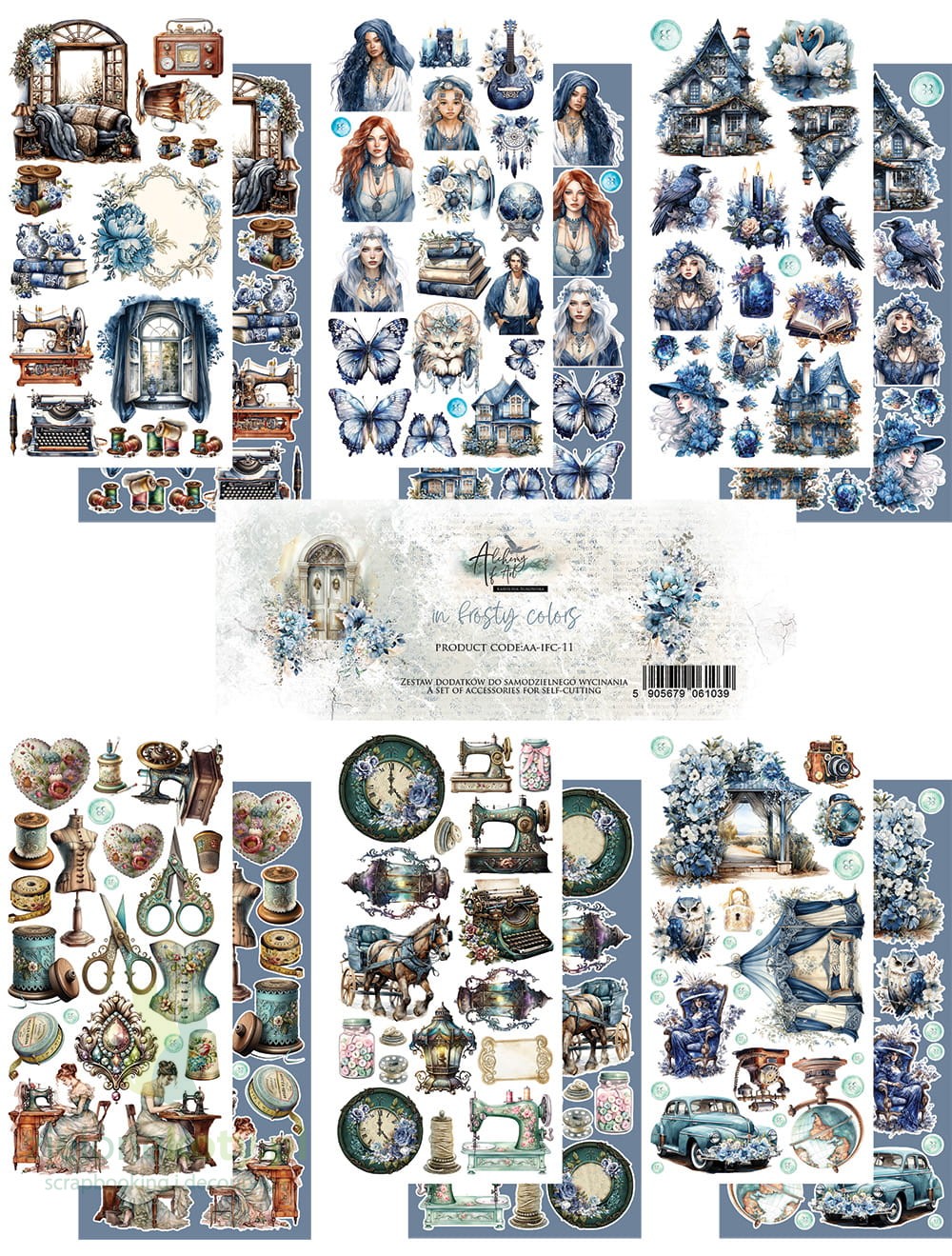 Zestaw papierów 15x30 Alchemy Of Art dodatki do wycinania In Frosty Colors Extras