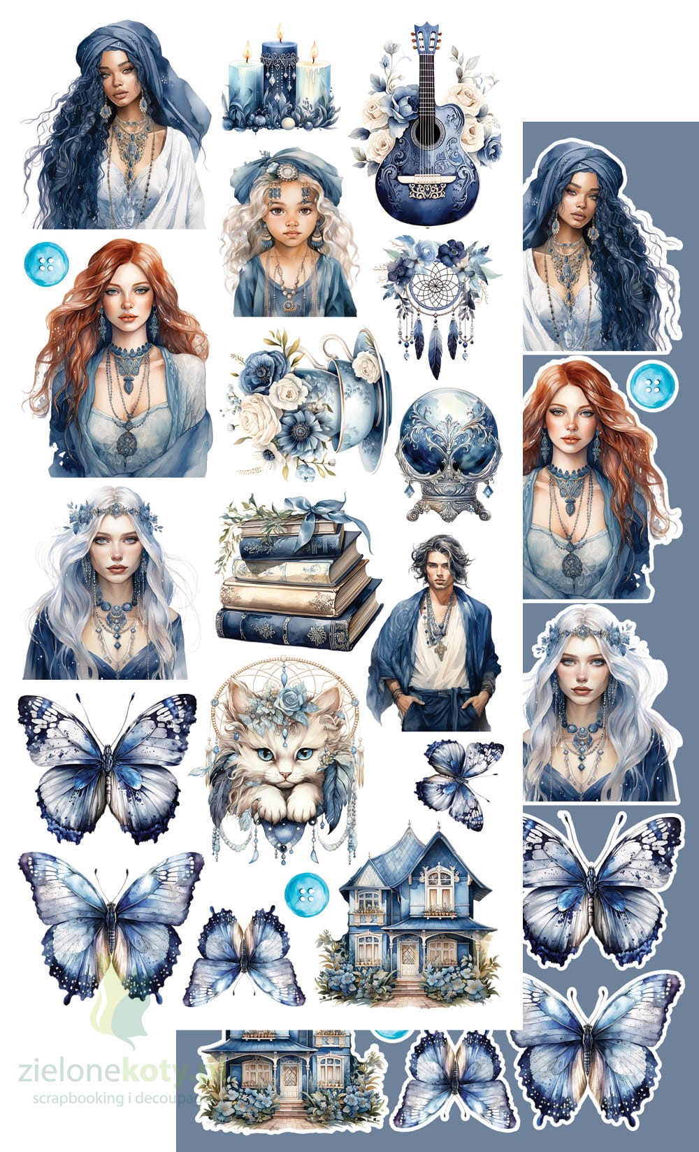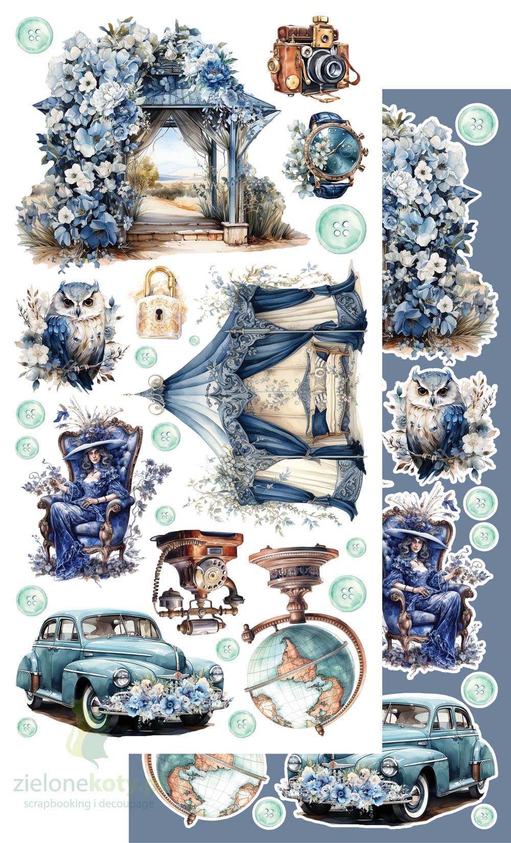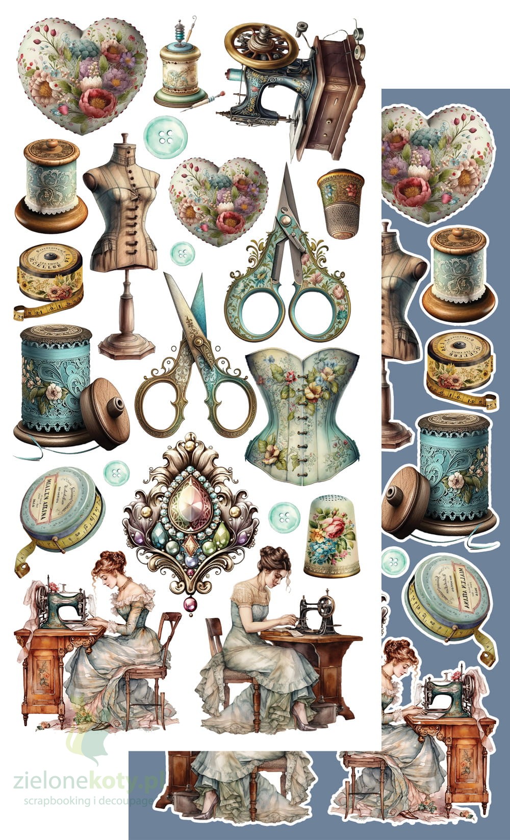 W skład zestawu wchodzi 6 dwustronnych papierów z elementami do samodzielnego wycięcia