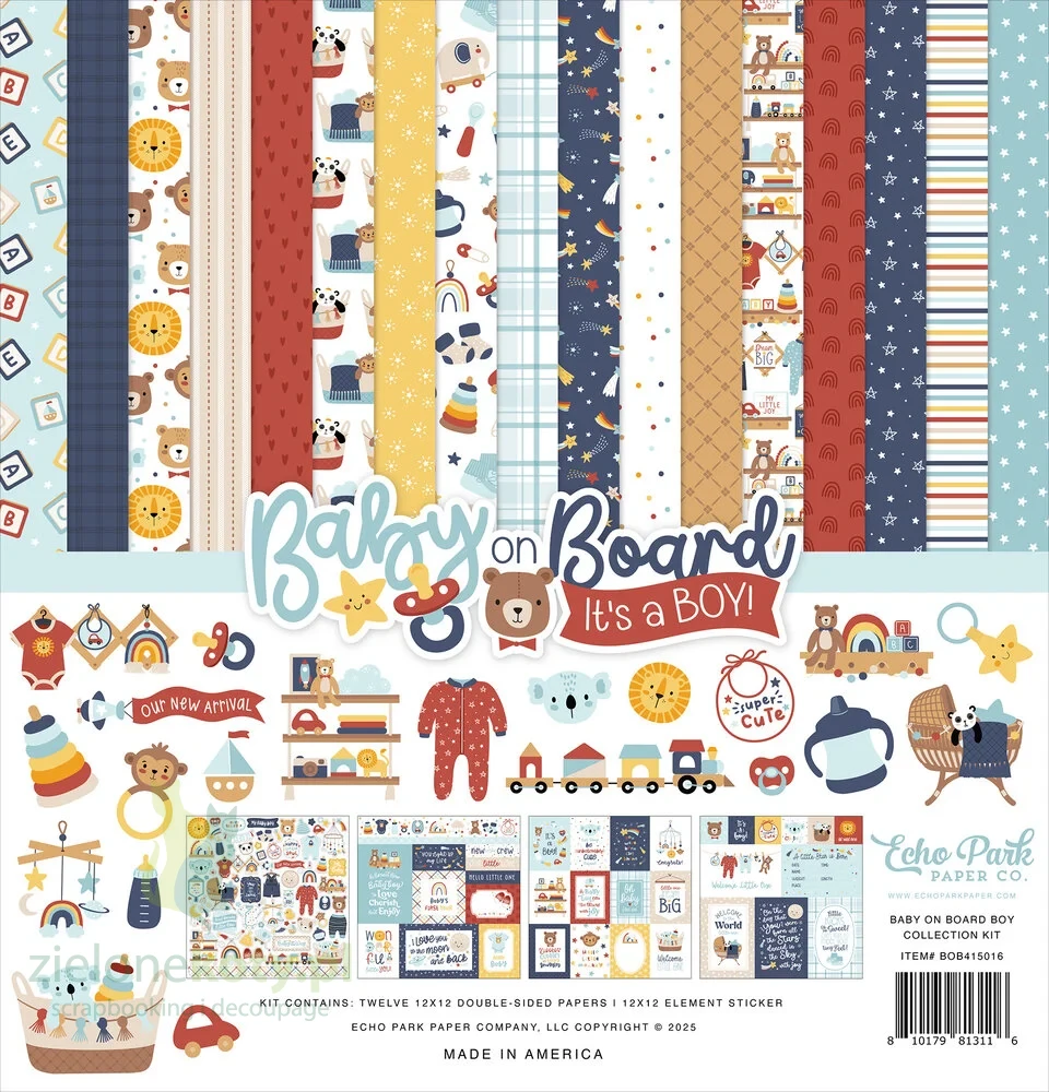 Zestaw papierów 30x30 Echo Park My Baby On Board It's a Boy! + naklejki