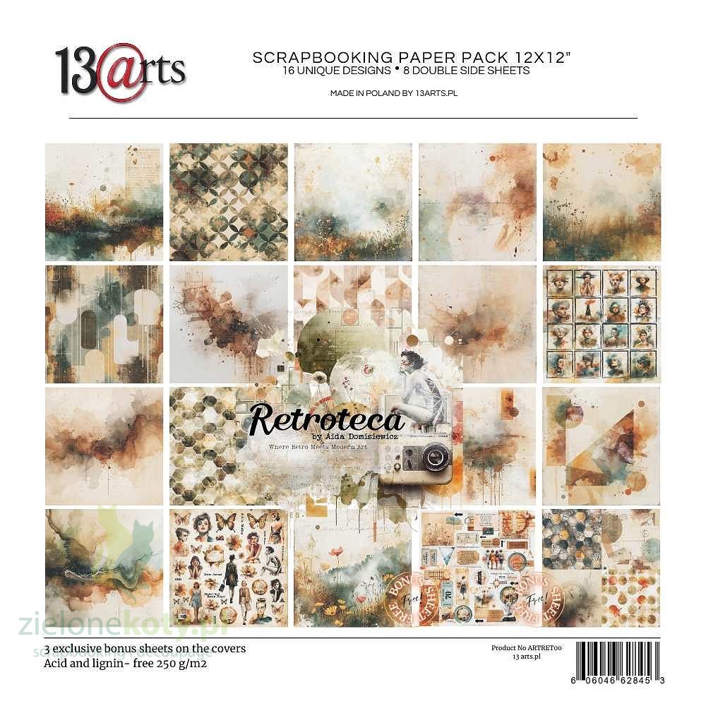 Zestaw papierów do scrapbookingu 30x30 13arts Retroteca