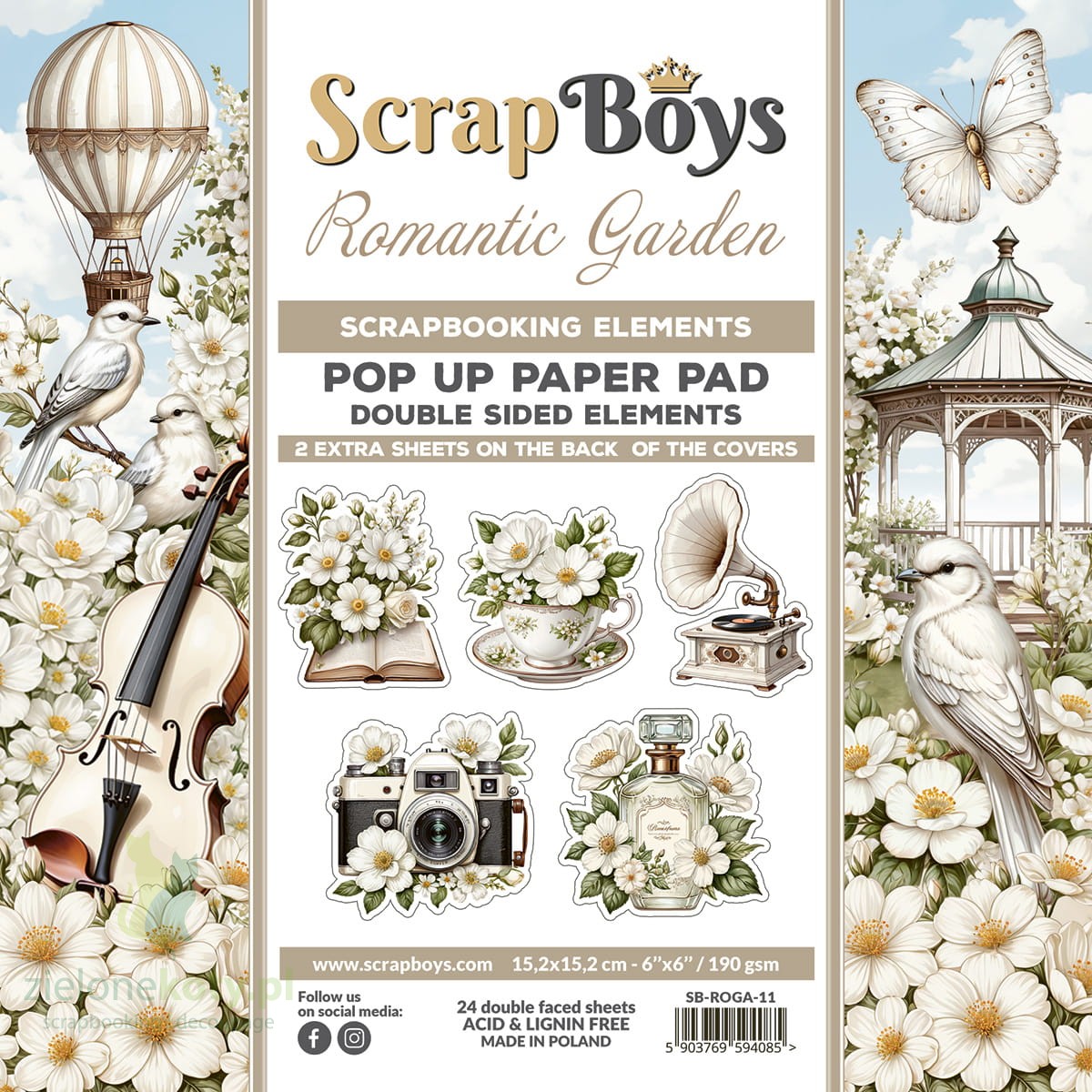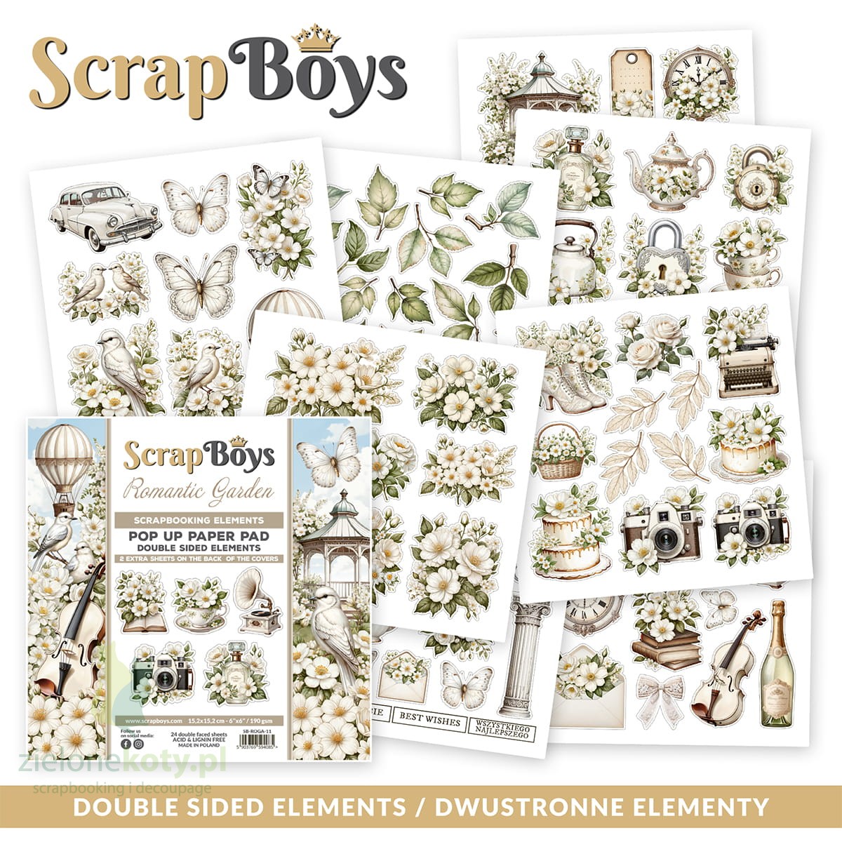 Zestaw papierów Pop Up Paper Pads 15x15 cm ScrapBoys Romantic Garden