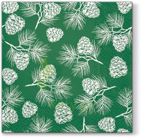 Serwetka 33x33cm gałązki z szyszkami, zieleń (sdl098616)