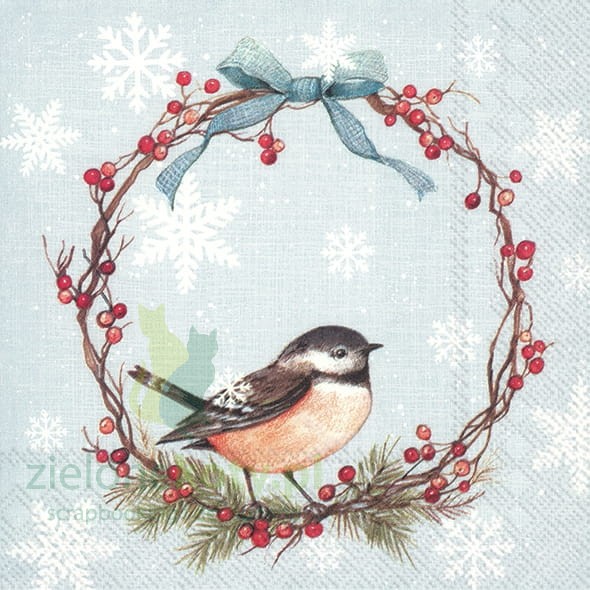Serwetka 33x33cm świąteczny wianek, ptaszek (L822849)